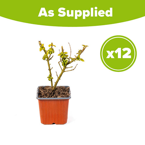 Supplied as a set of 12 established plants, each approximately 15cm tall, in individual 9cm pots, ready to plant.